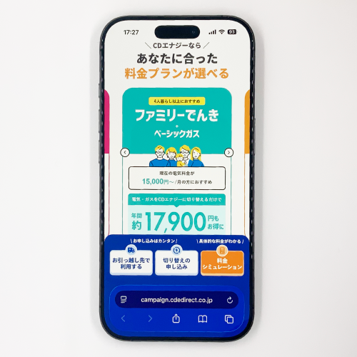 CDエナジーの公式キャンペーンは、公式サイトとは別にキャンペーンページがあるわけではなく、公式ページにまとめて紹介されているため、基本的にはそのまま申し込むだけで大丈夫です。