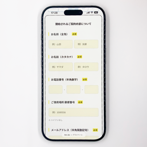 そのまま契約内容になるため、住所・連絡先・メールアドレス等ミスがないように確実に入力してください。