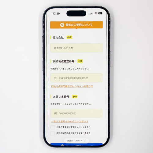 この際、供給地点特定番号やお客様番号等の入力が必要なため、すぐに確認できるようにしておくとスムーズです。