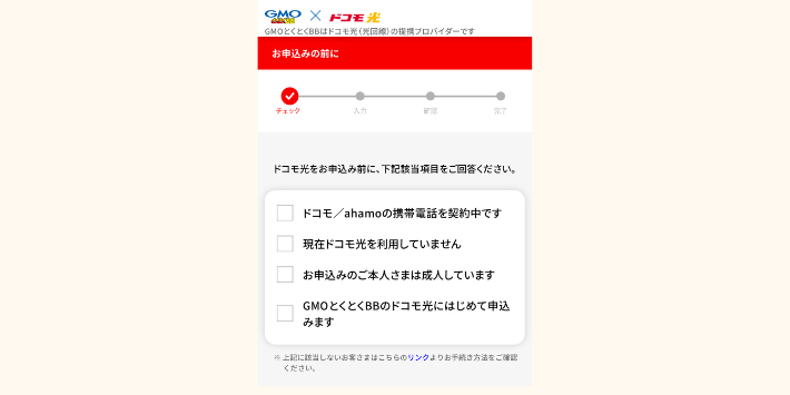 GMOとくとくBB×ドコモ光をオンラインで申し込む場合は、ドコモまたはahamoの契約が必要です。